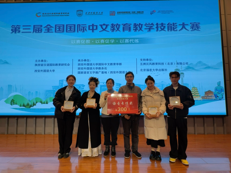 11月21日至23日,第三届全国国际中文教育教学技能大赛在西安外国语大学落下帷幕。九江学院汉语国际教育专业的4名参赛学生全部闯入决赛,最终荣获全国一等奖1项、二等奖1项、三等奖2项,并摘得“语音教学专项奖”。这是该团队继今年10月在第三届汉语国际教育国家级一流本科专业建设国际高峰论坛暨第四届“汉语+”全国汉语国际教育教学技能大赛中斩获全国特等奖和一等奖后,再次在全国舞台上取得优异成绩。